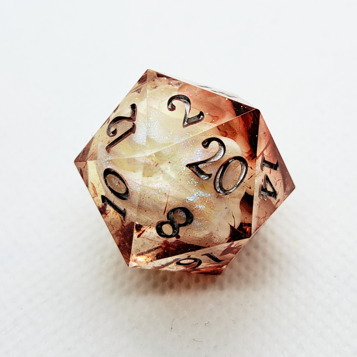 All my dice are cast, sanded, polished, and inked by hand. Each die is unique and might have small imperfections.